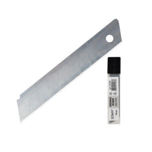 Лезвия для ножей 18 мм КОМПЛЕКТ 10 ШТ., толщина лезвия 0,38 мм, в пластиковом пенале, STAFF "Basic"