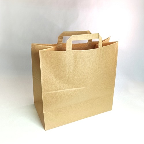 Пакет с плоскими ручками из коричневой крафт-бумаги и плоским дном