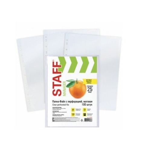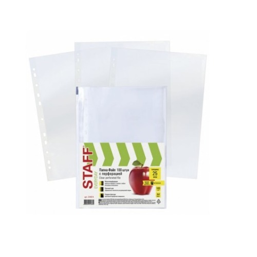 Папки-файлы перфорированные, А4, STAFF, комплект 100 шт., гладкие, 25 мкм