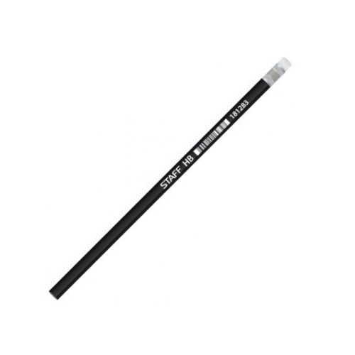 Карандаш чернографитный STAFF, 1 шт., НВ, с резинкой, пластиковый, корпус черный