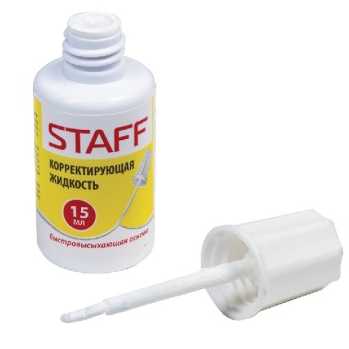 Корректирующая жидкость STAFF "Everyday" быстросохнущая, 15 мл, с кисточкой