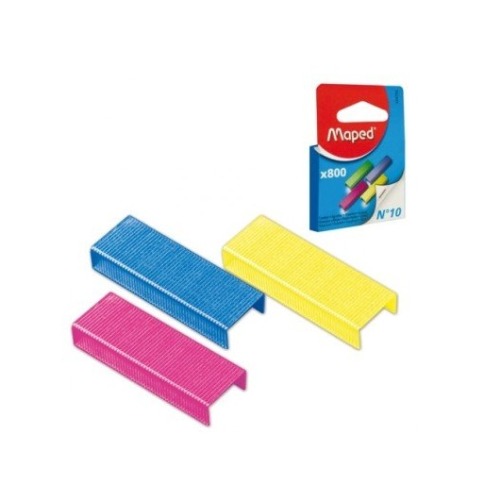 Скобы для степлера №10, 800 штук, цветные, MAPED (Франция), до 20 листов