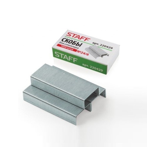 Скобы для степлера №24/6, 1000 штук, STAFF "Basic"