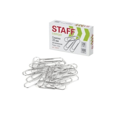 Скрепки STAFF "EVERYDAY", 28 мм, металлические, 100 шт., в картонной коробке, Россия