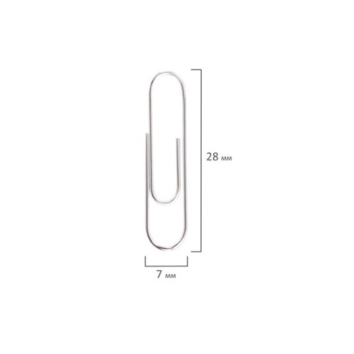Скрепки изготовлены из стали, имеют классическую овальную форму. Длина скрепки составляет 28 мм. Не окисляются и не повреждают документы. 100 штук в картонной коробке.