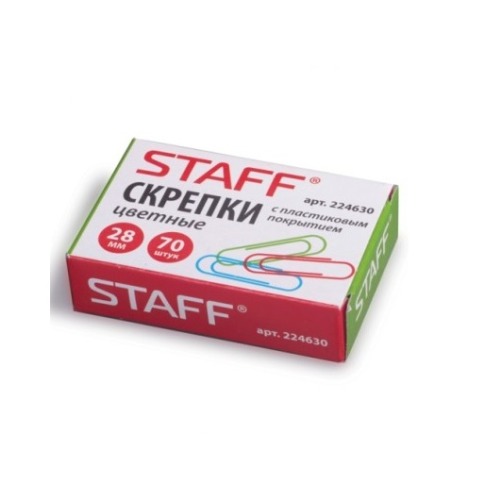 Скрепки STAFF "Manager", 28 мм, цветные, 70 шт., в картонной коробке, Россия