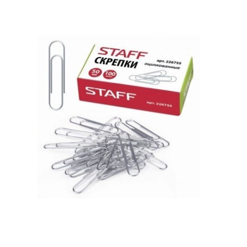Скрепки большие 50 мм, STAFF "EVERYDAY", оцинкованные, 100 шт., в картонной коробке